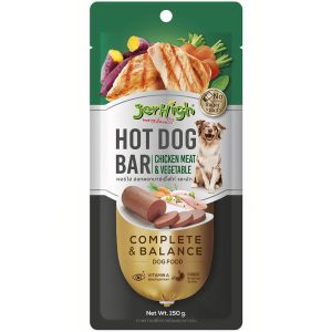 Xúc xích cho chó vị rau thịt gà JERHIGH Hot Dog Bar Chicken Meat Vegetable với thiết kế bao bì hoàn toàn mới. Sản phẩm ngon miệng được làm từ thịt gà thật, kết hợp với khoai lang và cà rốt ngọt ngào với lớp vỏ chất lượng cao.